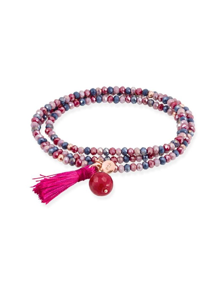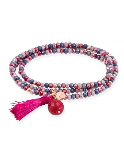 Pulsera de plata de primera ley (925) chapada en oro rosa de 18kt, cristal de Strass facetado multicolor y ágata fucsia. (largo: 51 cm.)