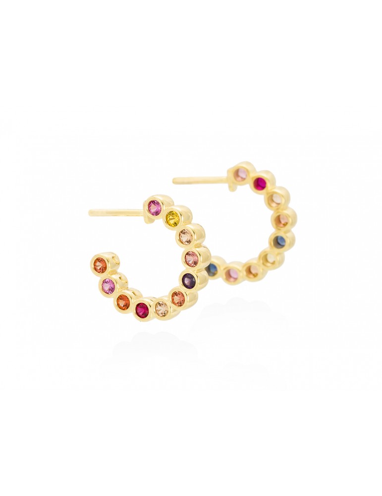 Pendientes plata primera ley chapada en oro amarillo 18k con zirconitas multicolor