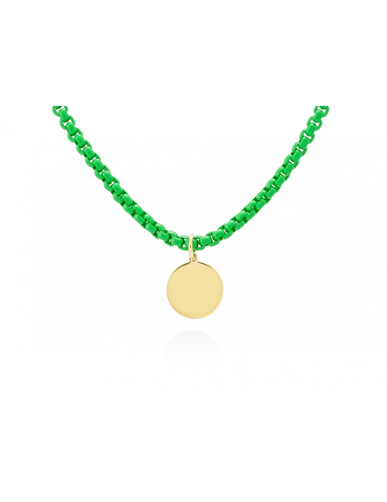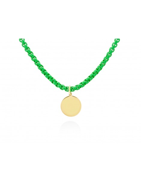 Collar acero inoxidable con recubrimiento PVD de color con colgante plata primera ley chapado en oro de 18k. Largo 42+3 cm