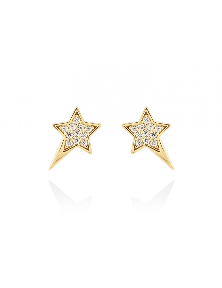 Pendientes de plata de primera ley chapada en oro amarillo de 18kt y circonita blanca ( tamaño 15mm )