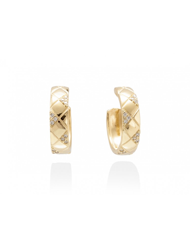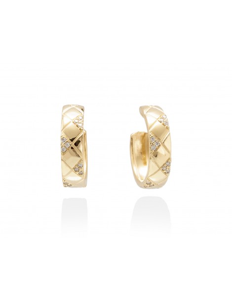 Pendientes plata primera ley chapada en oro amarillo de 18kt y circonita blanca ( diámetro exterior 2.5 cm )