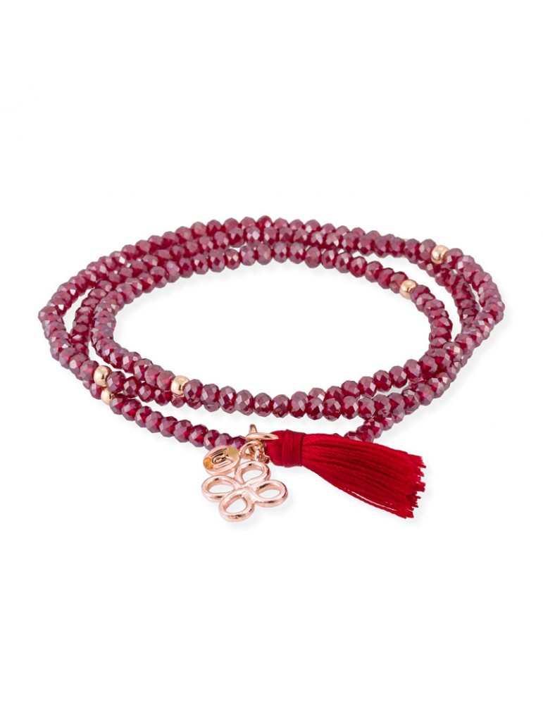 Pulsera de plata de primera ley (925) chapada en oro rosa de 18kt con cristal de Strass facetado rojo. (largo: 51 cm.)