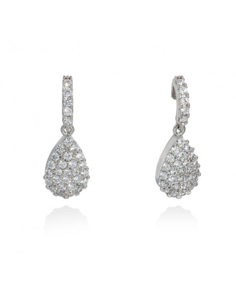 Pendientes de plata de primera ley (925) con baño de rodio y circonita blanca. (largo: 2.1 cm.)