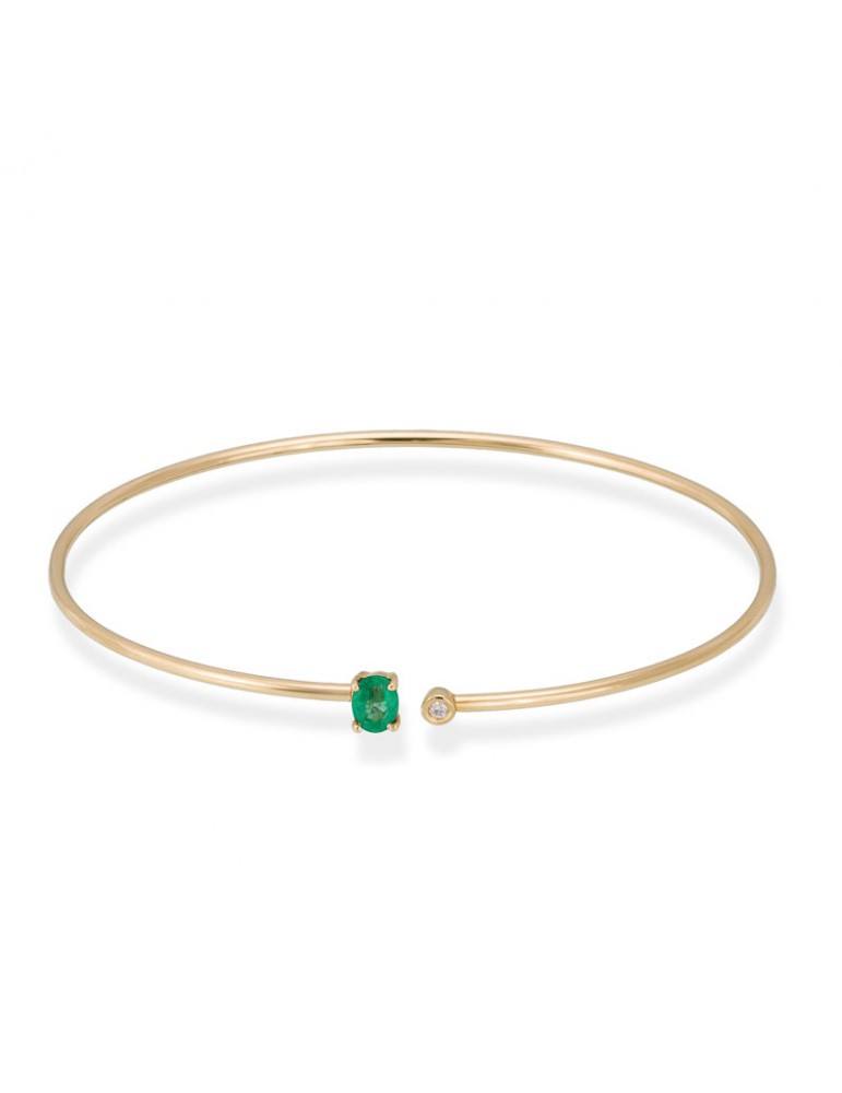 Pulsera de Oro amarillo de primera ley (750/1000) con 1 diamante de peso total 0.01 qt. (Color: Top Wesselton (G) Pureza: SI) y 1 esmeralda natural en talla oval mixta 5x4 mm.. (medida de muñeca: 17 cm.)